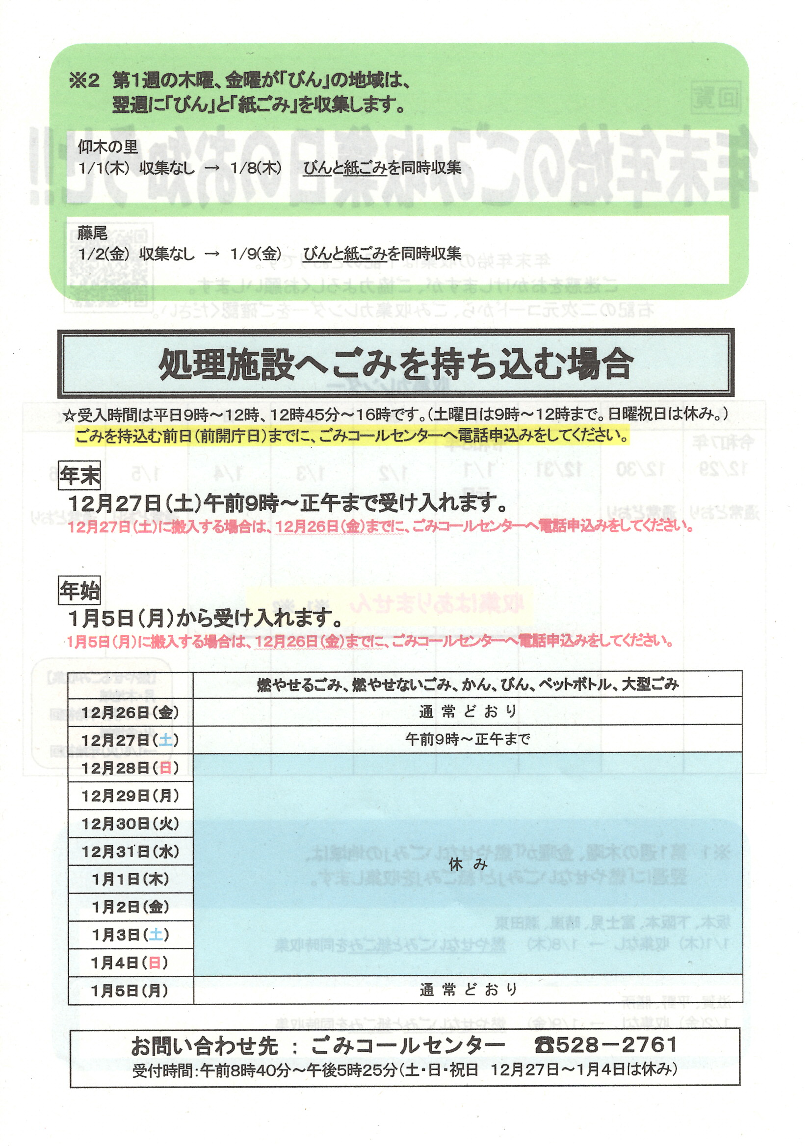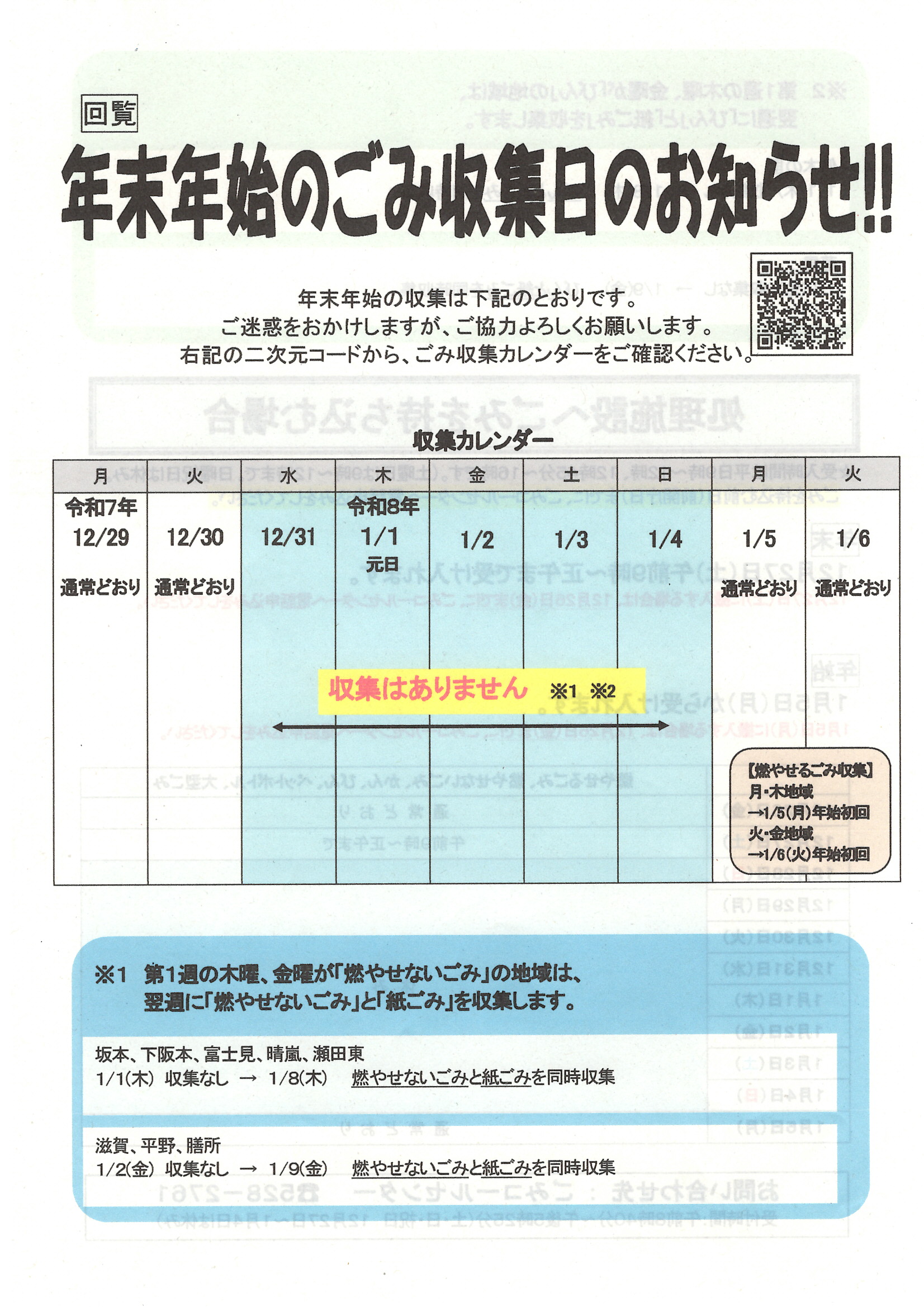 中筋自治会のごみ収集カレンダーと合わせて、ご確認お願い板います。