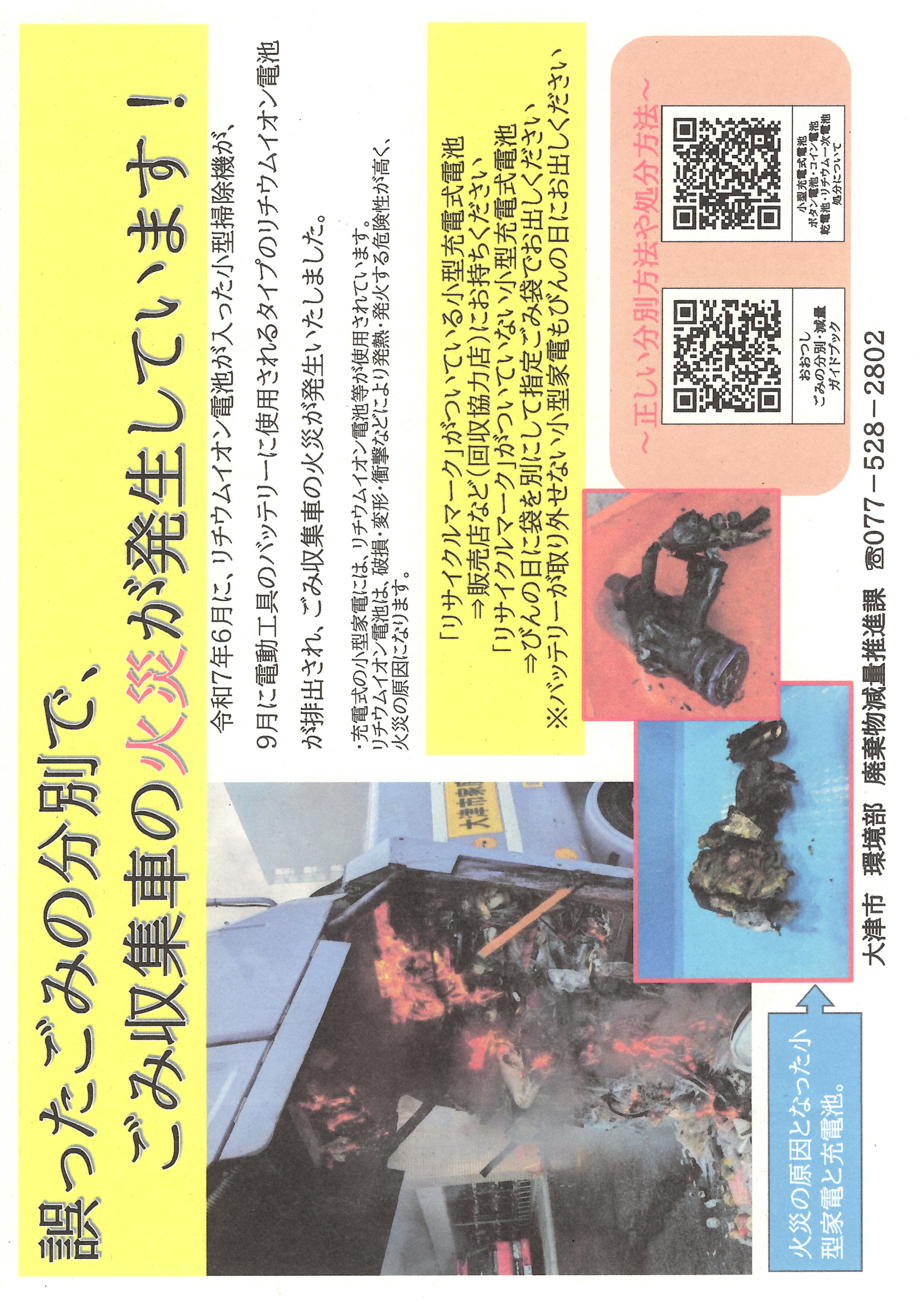 「誤ったごみの分別で、ゴミ収取車の火災が発生しています!」を添付