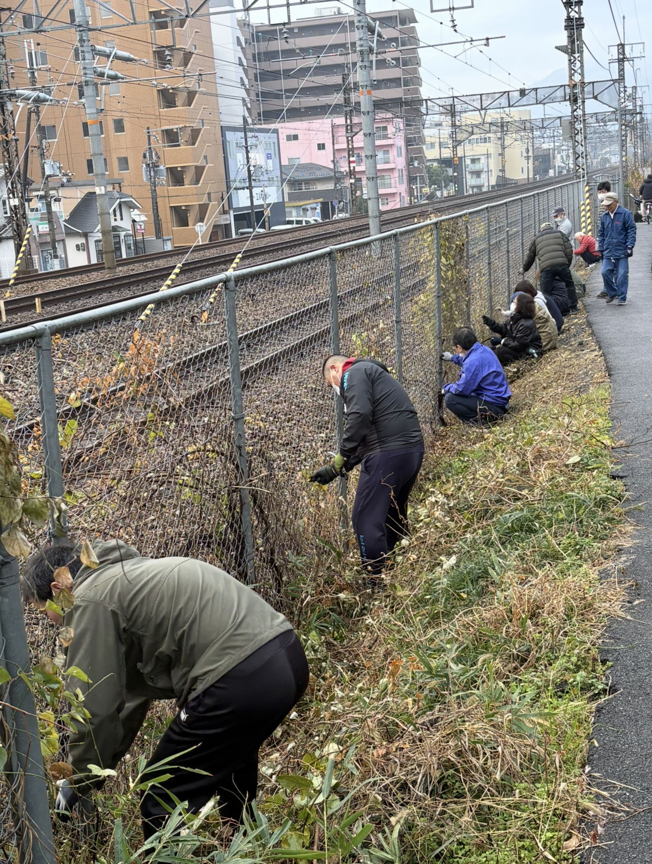 JRフェンス沿いは放置しておくと、雑草が生え通行が困難になったり、ポイ捨てゴミが沢山あります。