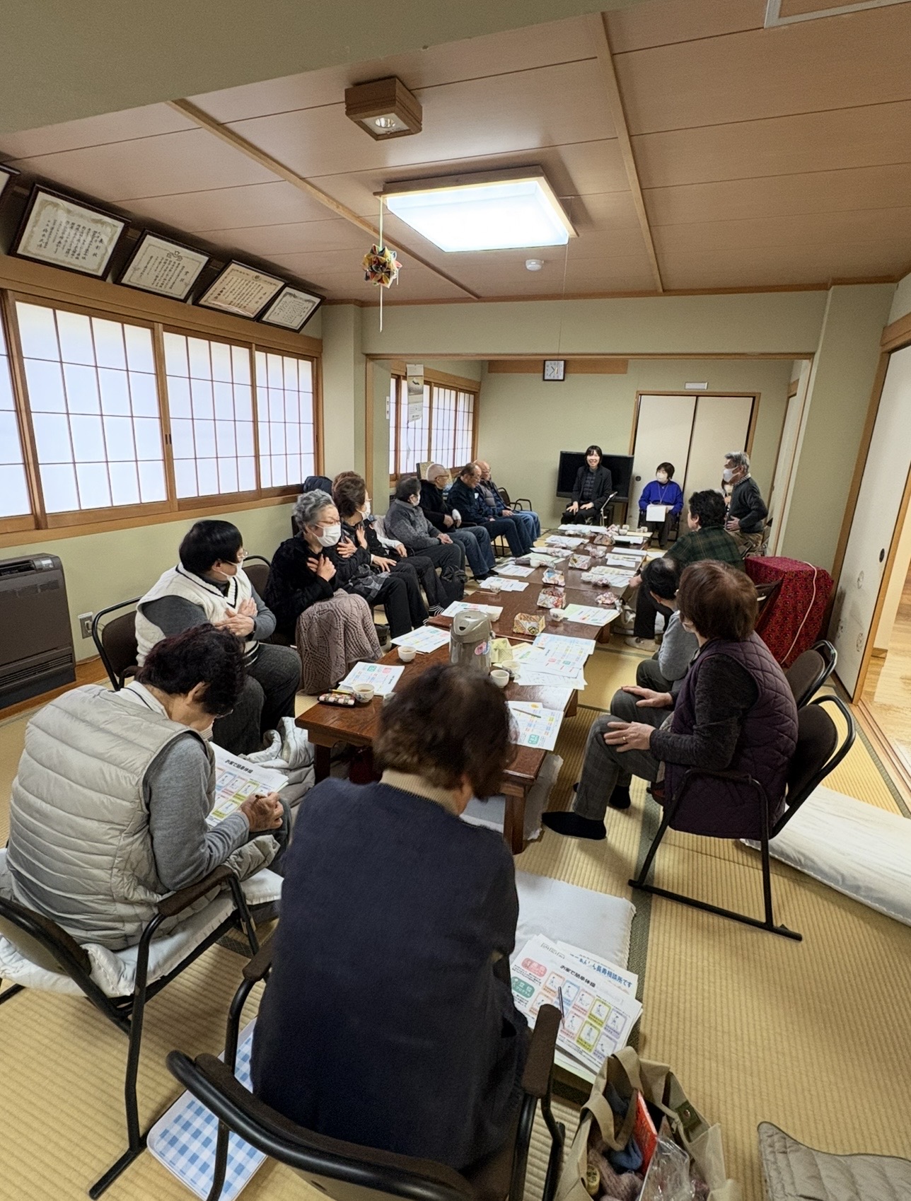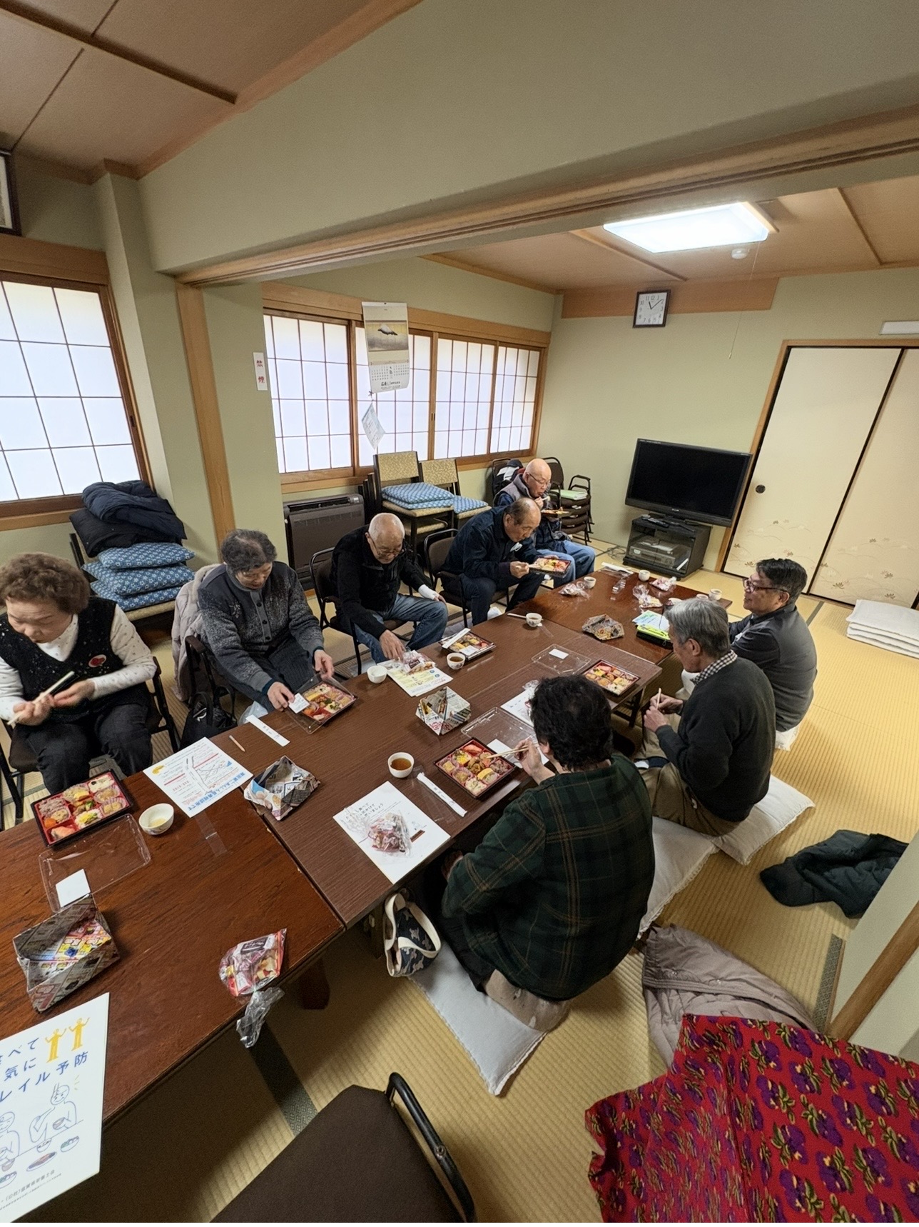 令和8年1月20日(火) 南大萱会館で中筋寿会から、米寿を迎えられる方々のお祝いと、栄養士の方を招いて、『食べて元気にフレイル予防』の講習会が開催されました😊